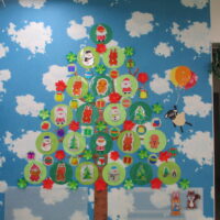 中勢グリーンパークに行く予定でしたが雨だったため、ハロウィンパーティーに向けてピニャータとクモの巣を制作しました。午前中は熊やハート、星の形に切り込みを入れた折り紙をはってピニャータを作りました。どの形にするのか、折り紙の色も決めていきました。自分の好きな色を決める子が多く、単色の子やいろいろな色を使ってカラフルにする子もいました。ピニャータに顔をつけて可愛くする子もいましたよ。次にクモの巣を折り紙で作りました。三角形に何度か折り、クモの巣の形にハサミで切っていきました。細かく切りアレンジしながら、素敵なハロウィンの飾りが出来上がりました。