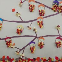 新しい年は辰年です。子どもたちに、黒の画用紙の上に干支の辰をイメージして、キラキラの折り紙でちぎり絵をしました。椿のお花も一緒に赤色と白色を作りました。大きさもそれぞれ自由にちぎり考えてもらいましたよ。葉もバランス良く配置してくれました。龍の手足も勢いのある姿で、どの作品も素晴らしく元気いっぱいでしたよ!細かい体の背びれ、三角になるように形を工夫してる子も多かったです。天に昇る龍のイメージを膨らませて、作品の下には、今年の抱負や、目標を貼り合わせました。今年の2024年、みんなの目標を達成できるように、頑張って取り組んでいきたいと思います。それから、ハグハグの木に椿の作品をもう一つ、みんなで作りました。椿のお花を角と角をキレイに折り進めて、花が出来ました。お花の真ん中は黄色の折り紙を花びらに入れます。指先を使い組み合わせて、完成すると「やったー!入ったよ。」「きれい。」とお隣に座るお友達と見せ合いながら盛り上がりましたよ。華やかな木になりました。