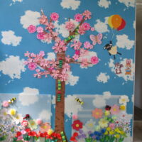 ハサミで切ったりのりではったり細かい作業でしたが最後まで頑張って取り組むことができました。完成すると頭に乗せてみたりして嬉しそうにしていました。