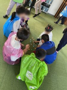 まず初めに子どもたちは「たからさがし(ジャックオーランタン)」をして文字を繋げてみました。答えは…「Trick or Treat」でしたよ!