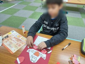 カレンダーの制作の日には翌月の活動の確認をし見通しをもって過ごせるように、なぜこの活動をするのかという目的の確認であったり、『今日、昨日、明日、三日後、一週間後』という言葉が何日を示すのかなど、カレンダーを作るだけでなく時間の流れや季節を感じられるよう工夫して行っています。同じことを繰り返すことでどんどん身に付いてきていると感じています。自分のスケジュールなども確認しながら、一日一日を大切に過ごしていってほしいなと思います。