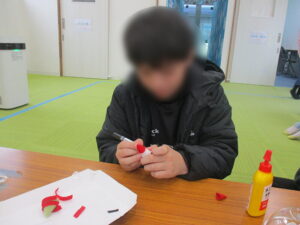 今回は、気合を入れてブーツの準備をしてみました!手芸が得意な指導員のもと、布でブーツを作りました。