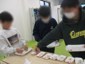 火災を想定した避難訓練をしました。始めになぜ避難訓練をするのかを話して真剣に取り組んでほしいことを伝えると、避難をするときや話を聞くときにとても真剣に取り組んでくれました。