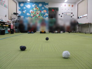先週で給食も終わり、午前下校となりました。待ちに待った冬休みまであと少しの子ども達はテンションが高くなっていたように感じます☃時間もたっぷりあったので、クリスマス会の準備や、みんなの大好きな体操をしてから、活動のボッチャを行いました。いつも大盛り上がりの活動なので、クリスマス会でも行おうと考えていました🎄クリスマス会ではチーム戦で行う予定だったため、そのチーム分けもかねて今回は個人戦を行いました。指導員が置いた水筒に一番近くボールを転がすことができた人が勝ちです。ボールは新聞紙で作った手作りの物なので少しデコボコで「違うところにいった…」と思い通りに転がらないことを嘆いている子も多くいました。何度か競っていましたが、なんと1番年下の子が1番上手でした✨最後にカゴを用意し、その中に入るように投げました。入った人からおやつを渡してもらえるというルールがあったため、みんな必死でした🔥最後はみんなカゴに入れることが出来て大喜びでした!クリスマス会ではチーム戦になるので、さらに盛り上がりそうで楽しみです❤