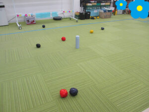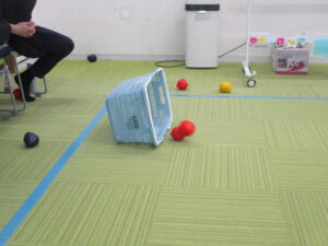 ♢運動・感覚…ボッチャに挑戦し、巧緻性を高めよう!