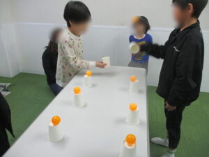 年が明けて早くも1ヶ月が経とうとしています。毎日厳しい寒さが続いておりますが、皆様いかがお過ごしでしょうか。ハグハグの子どもたちは寒さに負けず、元気いっぱい毎日を過ごされています。ビジョントレーニングとは、見る力を高め、見た物や自分の身体の動きを正しく認識したり(ボディーイメージ)、身体を自分のイメージ通りに動かしたりする(ボディーコントロール)機能を高めるコントロールのことを言います。暗記力の向上や認知力の向上など、日常生活に繋がるトレーニングで、今回はストラックアウトとピンポン玉キャッチを行いました。力加減を考えながらボールを投げ、ゴールを目掛けるのがなかなか難しい様子でしたが、回数を重ねるごとに考えながら投げることが出来て、ゴールへの的中率が上がって大盛り上がりでした☆
