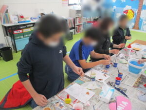 使いたい色を作るの苦戦をしながらもとても頑張って取り組んでくれました。
