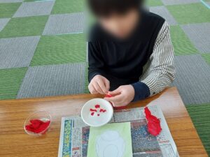 ♢(運動・感覚)・・・想像力を働かせて、ティッシュアート作りをしよう!