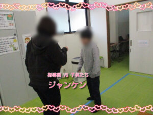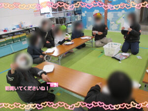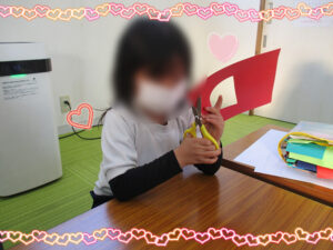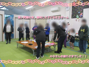 早いもので、2026年になり1カ月が過ぎました!!今日から2月!!節分も迫っているので、最初の活動は、工作からスタートです。節分に使うもので可愛いものを探していたら、いいのがあったので、みんなで作っていきました。下校が遅い子もいたので、簡単に作れる鬼のバッグを作ります。あらかじめ、準備してある画用紙(既に口が切ってあるもの)の輪郭を切っていき、その後、好きなように顔を作っていきます。目はポイントシールで貼ってもOK!自分で制作してもOK!自由に作ってもらいました。一応見本があるので、それを見ながら各々制作していました。部活動を頑張っている中学生、高校生の子も制作の手伝いをしてくれていました!!年齢が高い子も楽しんでくれていたので良かったです。完成して何人かの子に記念撮影をお願いするとポーズをつけてくれました。透明の袋になっているので、その中に豆やマシュマロを入れる予定です。
