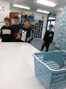 次は実際に狙ったところに打つことに挑戦しました。始めは荷物用のかご、次は箱というように少しずつ小さくしていきます。打つ強さを考え、場所もしっかり狙って…球が入ると「いえ~い!!」入らなくても「いえ~い!」と声を出し合う姿はまるで部活動のような雰囲気でした(笑)!