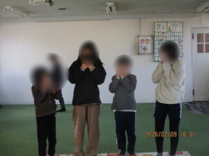 最後に「はあっていうゲーム」をしました。1つの言葉を様々な状況に応じて表現するゲームです。楽しみながらゲームを通して、人には色々な感情があること、また表情や仕草、声色から相手の感情を読み取り、また自分の感情を正しく伝えることの大切さを学ぶことができ充実した時間・活動になったと思います。