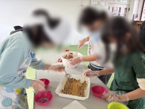 完成したお菓子を「全部食べたい!」と言っていた子も「お母さんにあげる!」「妹にあげる!」と自分が食べる分持ち帰り用と選んでラッピングして、おうちの方へ持ち帰る優しい子どもたちにほっこりしました☺喜んでもらえたかな⁉