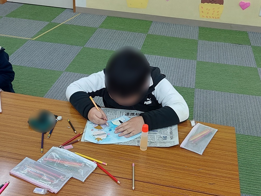 パステルアートでひな人形の飾り作りに挑戦しました。パステルアートに使うチョークの色を選んでいきました。ピンク、オレンジ、緑、青など、「どの色にしようかな・・」と自分の好きな色やひな人形にちなんだ色を選ぶ子もいました。扇形の画用紙に粉ふるいを使って選んだチョークを削っていきます。初めてパステルアートをするため、慎重になりながら削る子や、削るのが楽しくてたくさん削る子もいました。削ったチョークを布や指で色を広げていき、色がついていくのを楽しんでいました。次にお雛様とお内裏様の服を折り紙で作っていきました。折るのが簡単なため、「こうかな?」と確認をしながら一人で折ることができていました。最後にお雛様とお内裏様の顔を描いていき、できあがると「みてみてー!」と見せてくれて素敵なひな人形の飾りができましたよ。