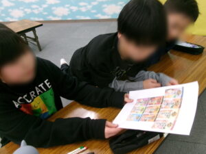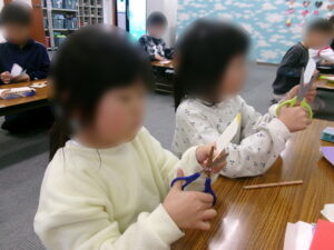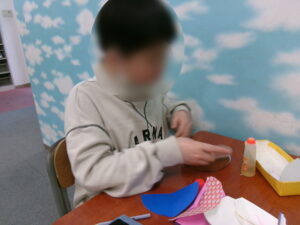 「見て、こうで合ってるでしょ!」と綺麗に仕上がったものを嬉しそうに見せてくれたり、指導員が手伝おうとすると「僕できる!」と宣言し、指先に集中して自分の力で完成に持っていったりと、子ども達の成長を肌で感じることが出来ました。