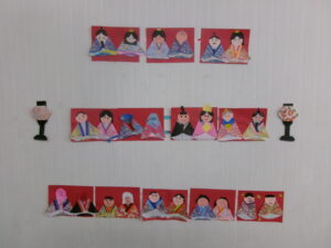 来月3日は雛祭りですね。それに向けてひな人形の壁面飾りの制作をしました。