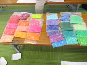 並べてからアイロンをかけて固めました。チェーンを付けてキーホルダにすると早速かばんに着けてみたりしていました。「これは友達にプレゼントする🥰」と言っている子もいました。集中して作業に取り組むことができました👏✨