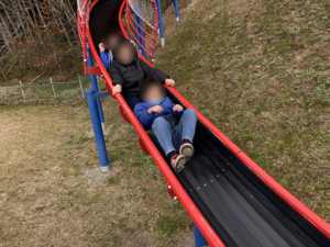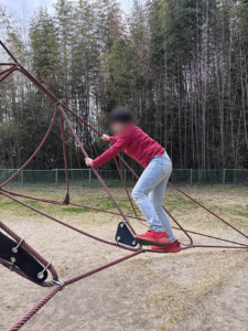 公園内ではのびのびと楽しく体を動かす子ども達。大きい滑り台やネット状の遊具が人気で「一緒にしよ!」と子ども達同士関わりながら楽しんでいました。