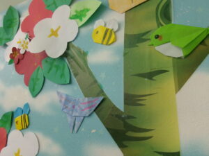 1日目は折り紙でうぐいす・ミツバチ・蝶々の3種類を作っていきます。うぐいすってどんな鳥?鳴き声は?と子ども達と会話を膨らませながら折っていきました。久しぶりの折り紙の活動に子ども達も楽しそう。皆最後まで折りきることが出来ました!ミツバチと蝶々は折図を見ながら自分たちで折り進めていきます。図を見ながら折っていくことで、形を理解する力も育んでいきます。それぞれ分からない所は指導員に聞いたりしながら、とても可愛い春の生き物を作り上げることが出来ました✨