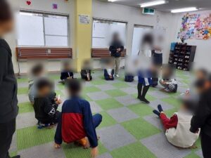 次はひな祭りバスケットです。フルーツバスケットのひな祭りバージョンでおひな様、お内裏様、右大臣、五人囃子のグループに分け、みんなで一斉に移動する合言葉はひな祭り!です。みんな楽しんで参加してくれていたのですが・・・みんな鬼になりたくてわざと座らない子が多発していました。ルールを再確認して、ルールを守らないとゲームが成りたたないこと、きちんとルールを守っている子が面白くなくなってしまうことなど伝え、ルールを守ることの大切さを学ぶことができました。