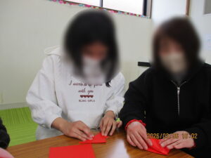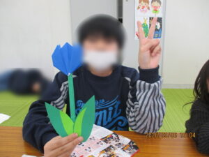 2日目は植物🌷の制作です。折り紙でチューリップ、マーガレットを作りました。中学生が卒業式で自宅学習の日だったので午前中から少しずつ制作をしていきました。小学生の子も帰ってきてから「今日は何作るのー?🤔」とすぐに宿題を終わらせて植物の制作をしてくれました。前日に引き続きとても頑張って取り組んでくれました。完成した春の生き物や植物はインフィニティに貼りました。一気に春らしくなりました🌷✨