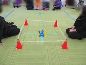 今日は、ソロリぞろりゲームをする前に俊敏性を高める運動、全身を使う運動をしました。
