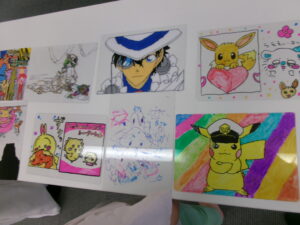 自分の好きなキャラクターをなぞり書きして作っていきました。今回の目標としては「丁寧に描く」「時間を見ながら描いていく」の2点でした。スカイは製作がとても上手です。今回はステップアップして時間の見通しを持って進められる目標を立てました。