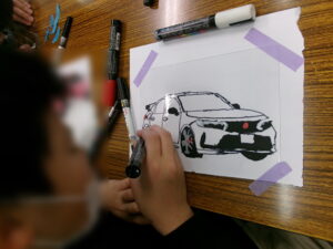 線ができたら色塗りです。この色塗りもただ塗っていくだけでなく、ムラができないように力加減を調整したり、色が混ざらないように塗る順番を考えながら塗ったりと、一人ひとり工夫する姿が見られました。