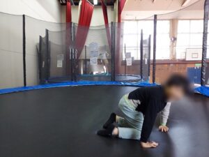 初めてのういこっちゃねに朝から子どもたちも「何があるんやろ!?」と、とても楽しみな様子でした。ういこっちゃねまでの道のりが少し長いこともあり「まだつかんの?」「遠いな」と言っていましたが、到着すると「ついたー!!」と大盛り上がりの子どもたち。大きなすべり台やボルダリング、トランポリンなどを見て、子どもたちは目を輝かせて「もう遊んでいいの!?」とウキウキでそれぞれが遊たい遊具に走って遊び始めていましたよ。すべり台は、かなり急な角度で大人でも滑ることが怖かったですが、子どもたちは怖がる様子もなく何度も楽しそうに滑っていました。跳び箱やボールなど遊びたい物がたくさんありすぎて、「次はこれする!」とういこっちゃねの中を元気いっぱい動き回って全力で遊んでいました。時間いっぱいたくさん遊びましたが、帰る時間になると「もう帰るの?」とまだまだ遊び足りない様子でした。「めっちゃ楽しかった!」「すべり台怖くなかったよ」と帰りの車もういこっちゃねの話で盛り上がっていましたよ。