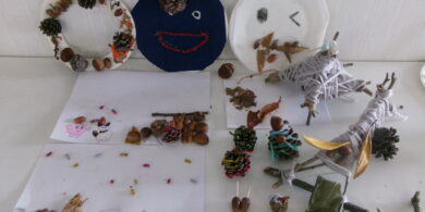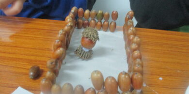 ◇制作活動…ドングリや落ち葉などを使って色々なものを制作しよう!先月の活動で集めてきたドングリや落ち葉などを使用して制作を行いました…