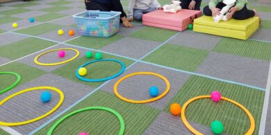 ♢(人間関係・社会性)・・・みんなで協力して、積み上げゲームをしよう! 牛乳パックやプールステックを輪切りにしたものを積み上げていきまし…